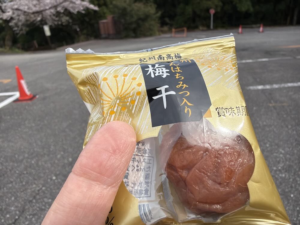 さらに那智の売店では、「はちみつ梅干し」も購入。 「足が攣るのはミネラル不足だ!」という本能の叫びに従った結果です。ちなみにこの梅干し、翌朝にコロッケパンと一緒に食べるという、自分でも驚くような「サバイバルな組み合わせ」でいただくことになるのですが……これがまた、疲れた体に染みたんです(笑)。