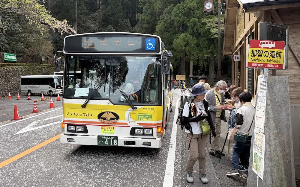 那智駅からバスに乗り込み、まずは一気に「飛瀧(ひろう)神社」(那智の滝)へ向かいます。 これ、大正解でした。バスで足を休めている間に、気力も少しずつ回復。